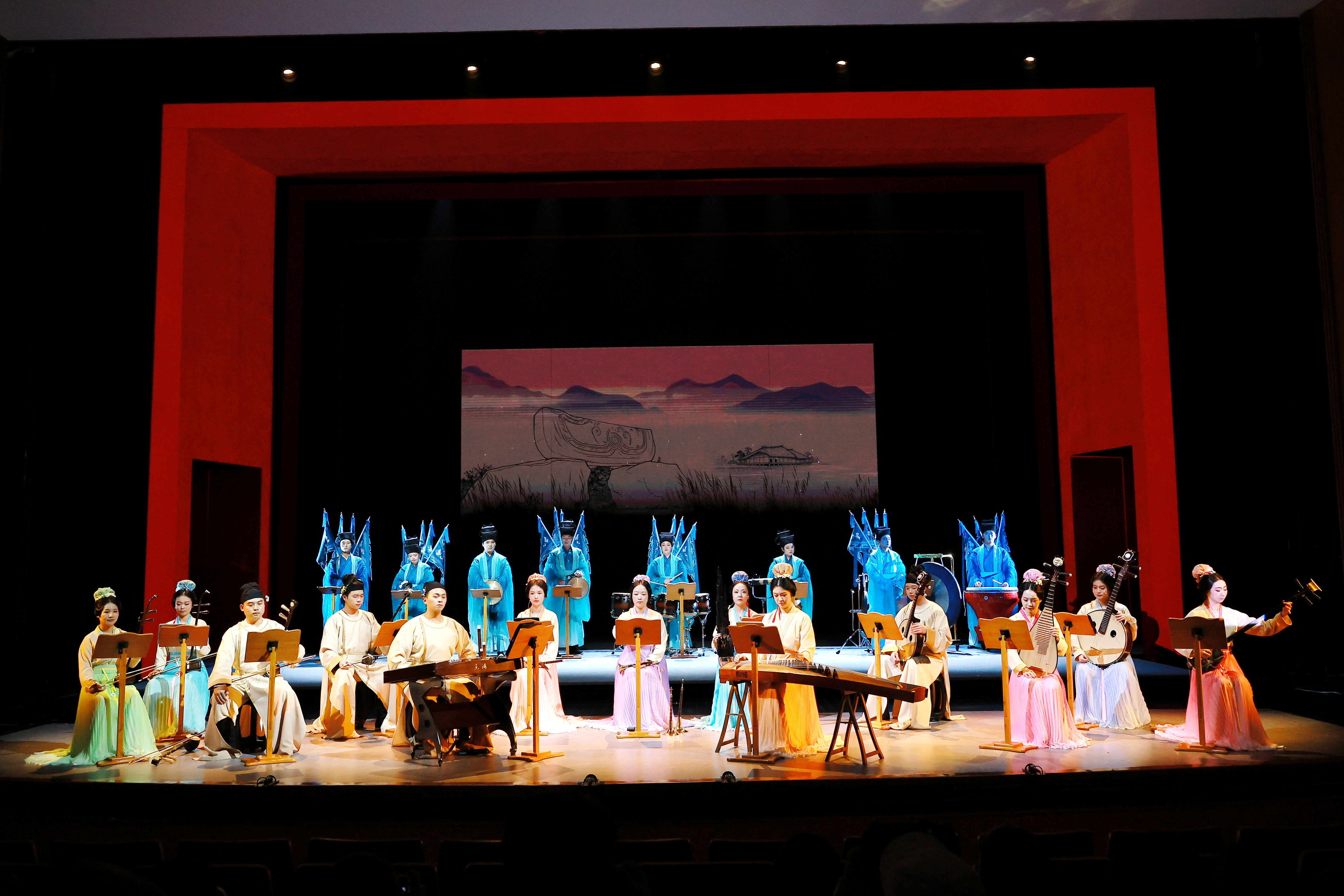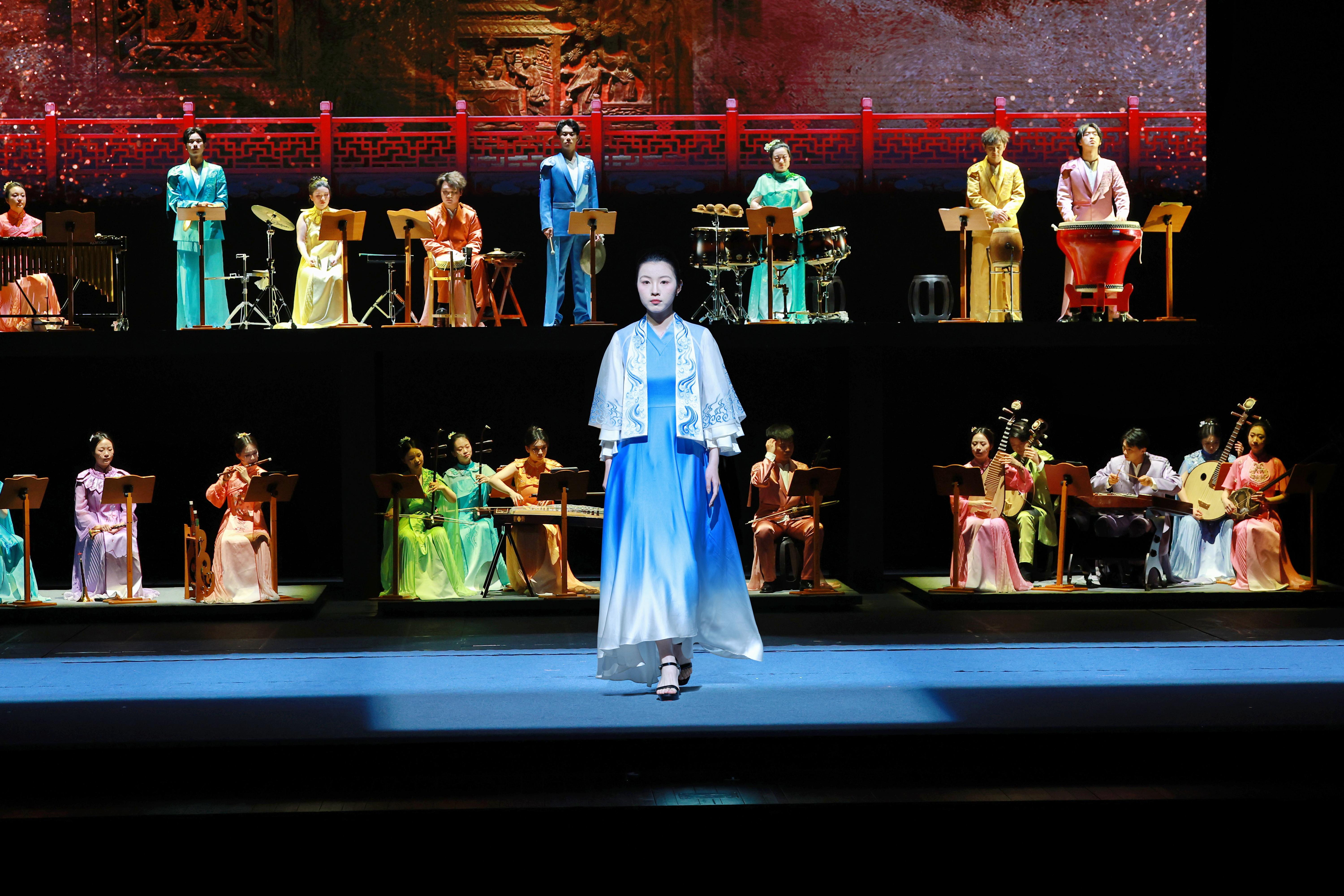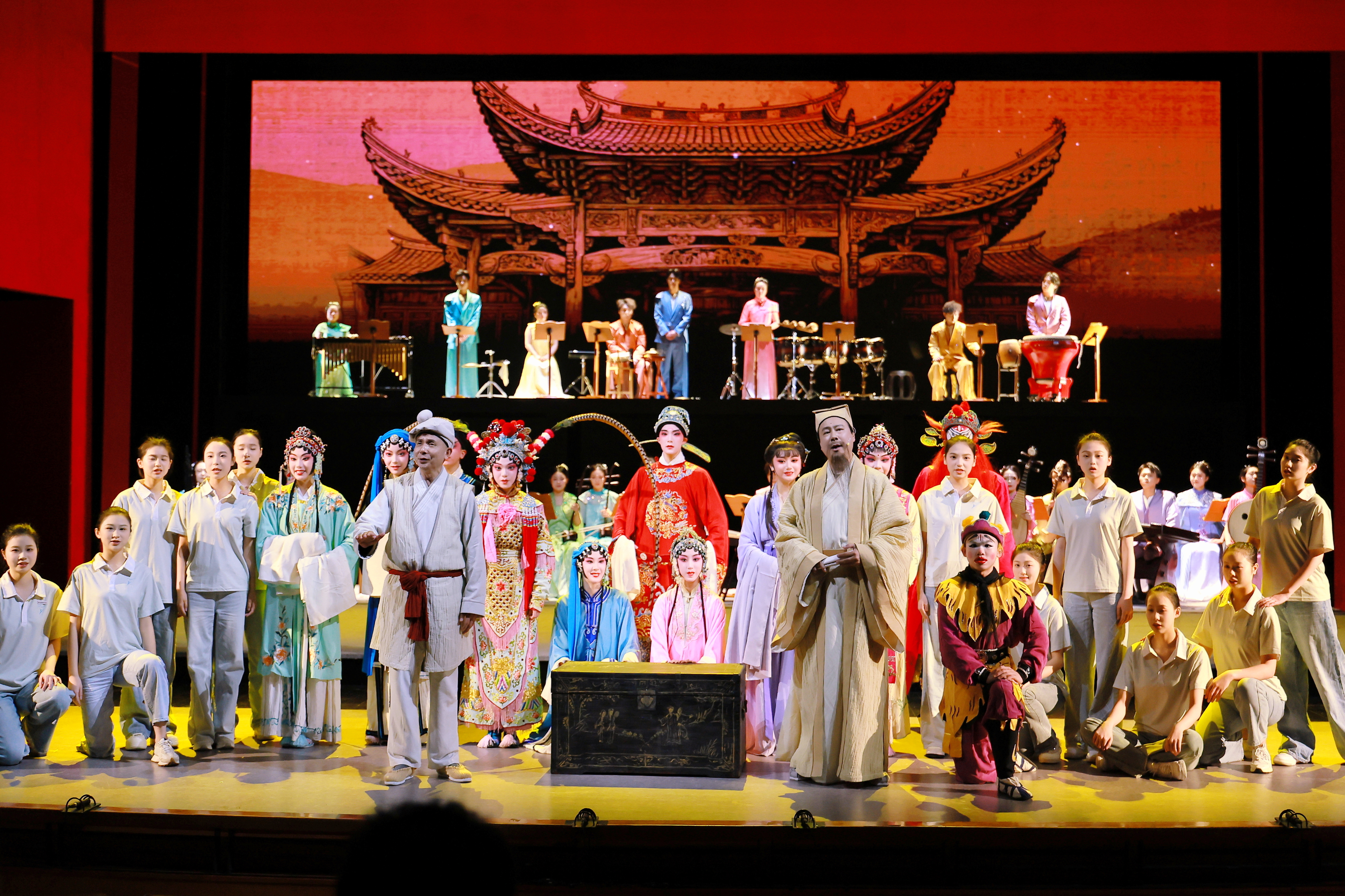 在演绎阵容上,本次演出更是实现了艺术院校与戏剧院团的深度联动,浙江艺术职业学院汇集音乐学院、戏曲学院、舞蹈学院、戏剧影视学院、设计学院师生与瑞安市越剧团、永嘉昆剧团及浙江音乐学院民族室内乐团演职人员联袂献演,专业的戏曲表演、精湛的民族器乐演奏、灵动的舞台演绎融为一体,让南戏的声腔韵味与民族室内乐的生动诠释完美结合,既保留了南戏的经典内核,又赋予了其符合当代审美的舞台表达,让古老的南戏在新时代的舞台上焕发出全新活力。
