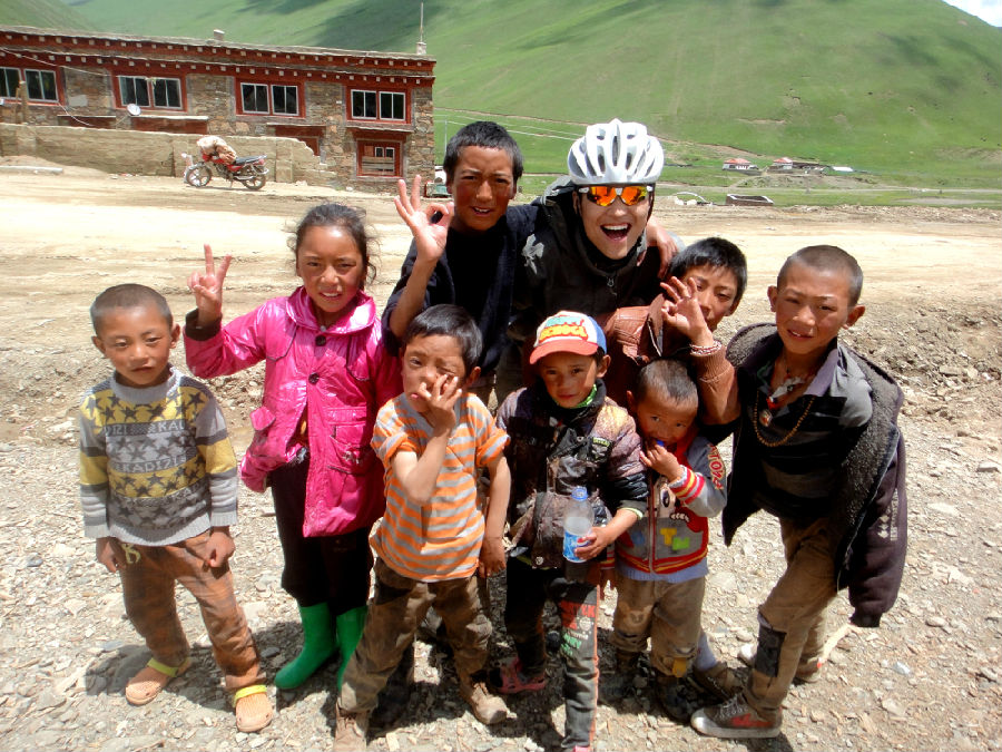 去拉萨的最后一站,经过5020米高的米拉雪山时,山下淅淅沥沥的小雨,山顶纷飞肆虐的大雪,天气冷的就像寒冬腊月,即使是不断地蹬着车子,身体也不由冻得僵硬起来,大概是想到翻过这座山就要到达梦寐以求的目的地,那一天,鲍树硬是坚持着骑了185公里。185公里几乎等于从杭州到上海的距离,别说是雨雪交加,就是天朗气清的时候要骑这么远也是件十分困难的事,“刚开始时我甚至想过我可能坚持不下来,但是转念又想,既然已经开始了,那就骑下去吧,总不能在半路停下来。”