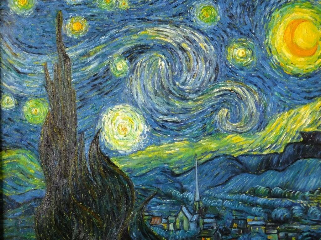 《星月夜》在他的眼里永远是变换不定的,时空被扭曲,一切都那么模糊,又都那么真实。还有就是他的《向日葵》,他心中那团永不熄灭的大火,那焕发出蓬勃生命力的金色花朵,那喷薄欲出的力量,不正是他穷尽一生所追寻的吗?金色的麦穗在风中起舞,田间的小路伸向未知的远方,阴沉沉的天空下,一群乌鸦在麦田上空盘旋飞舞,那是死神的使者,那是绝望的化身,不久后,他饮弹自尽了,只留下最后的这幅《麦田上的鸦群》引人猜想。