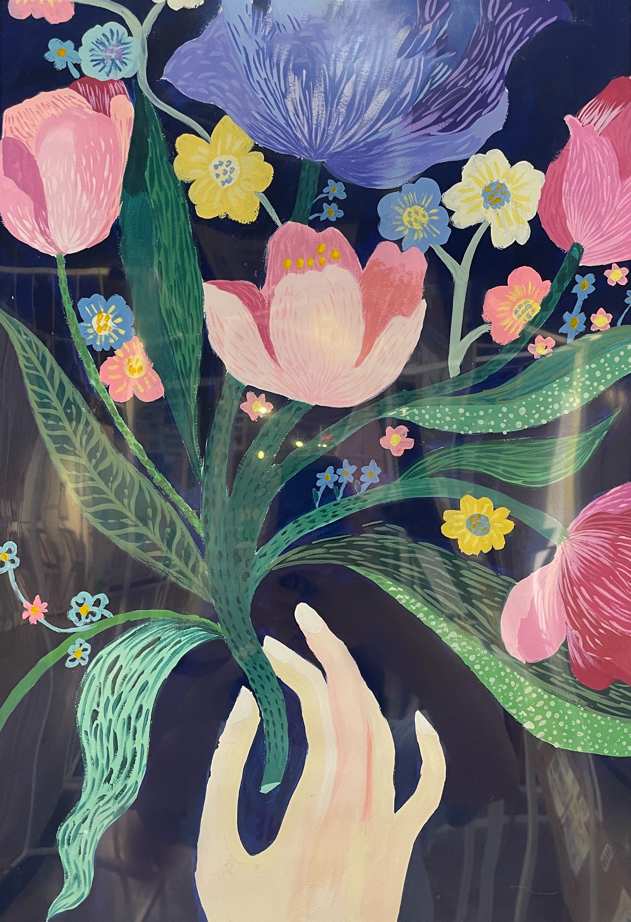 水粉画《手中花》